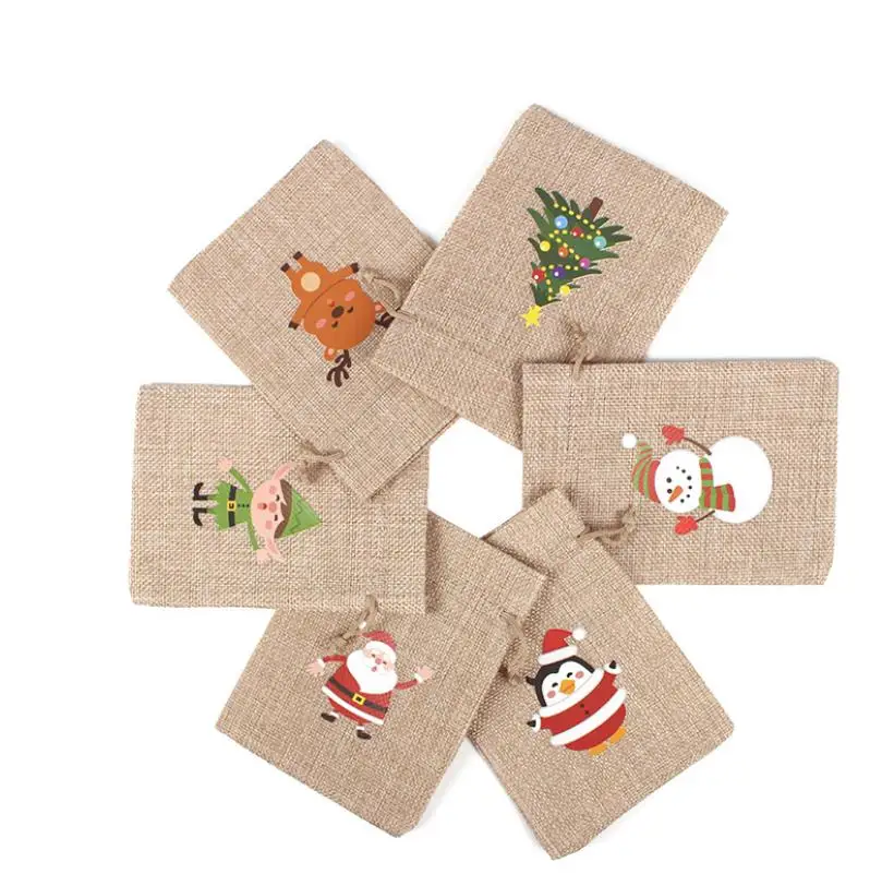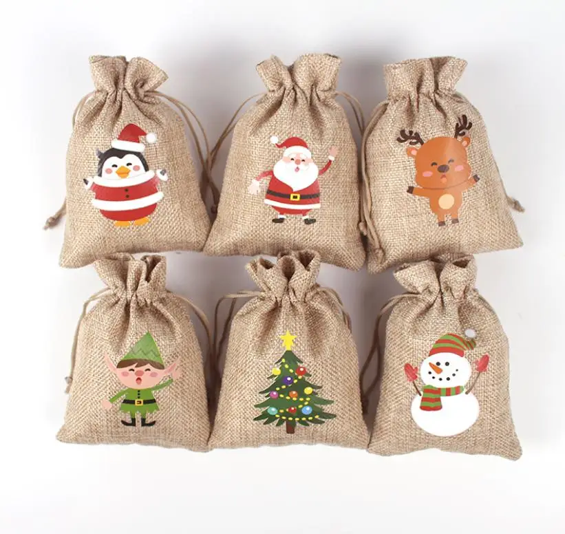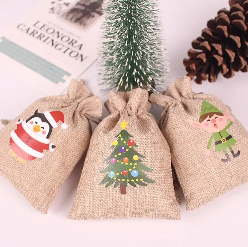 Christmas Decorations Kid Jute Small tote Children Gift Candy Storage Burlap Christmas Drawstring Bag