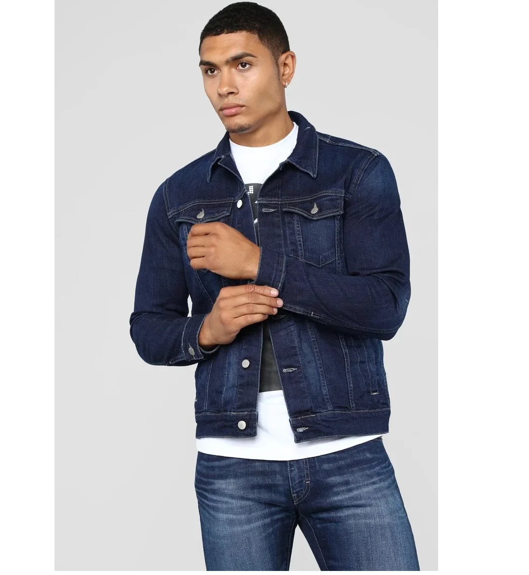 Men’s Dark Blue Jean Jacket Washed Solid Color Denim Jackets New Arrival Oversize Denim Jacket 2025
