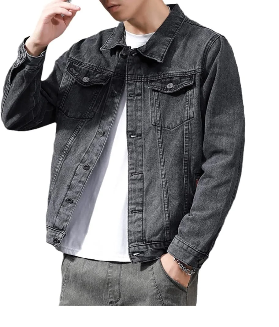 Men Slim Fit Denim Jackets Vintage Acid Washed Plus Size Breathable Street Wear Denim Jacket for Men