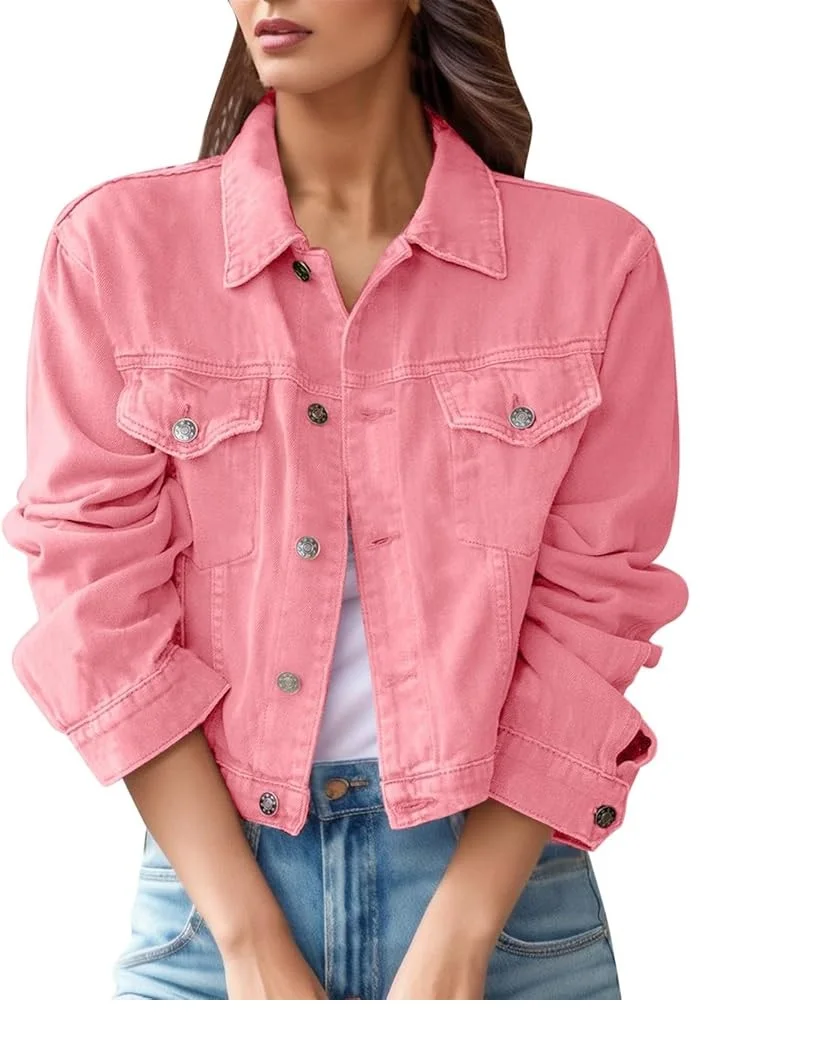 Jeans Jackets Fashion Pink COlor 2025 Hot Selling Jeans Distressed Ripped Jackets Fir Winter Ladies