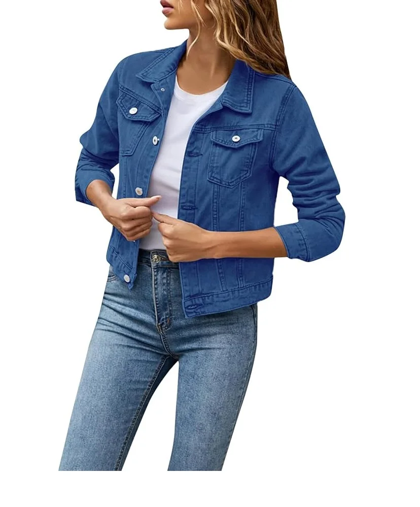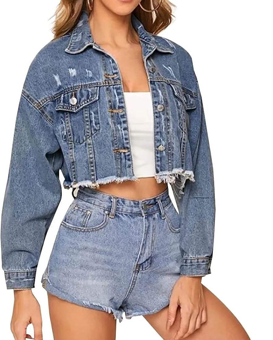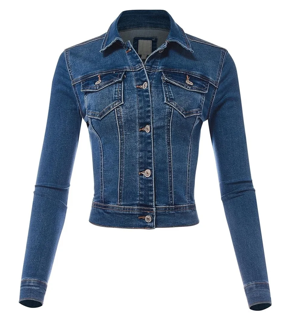 Fashion Girls Denim Jackets Casual Outerwear Crop Top Slim Fit Denim Jeans Jackets With Fleece Arms for Womens