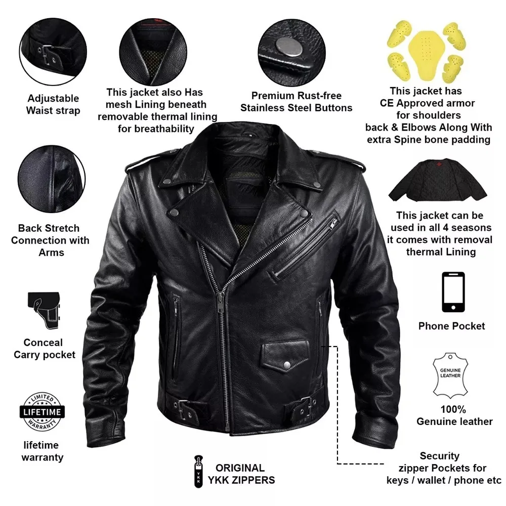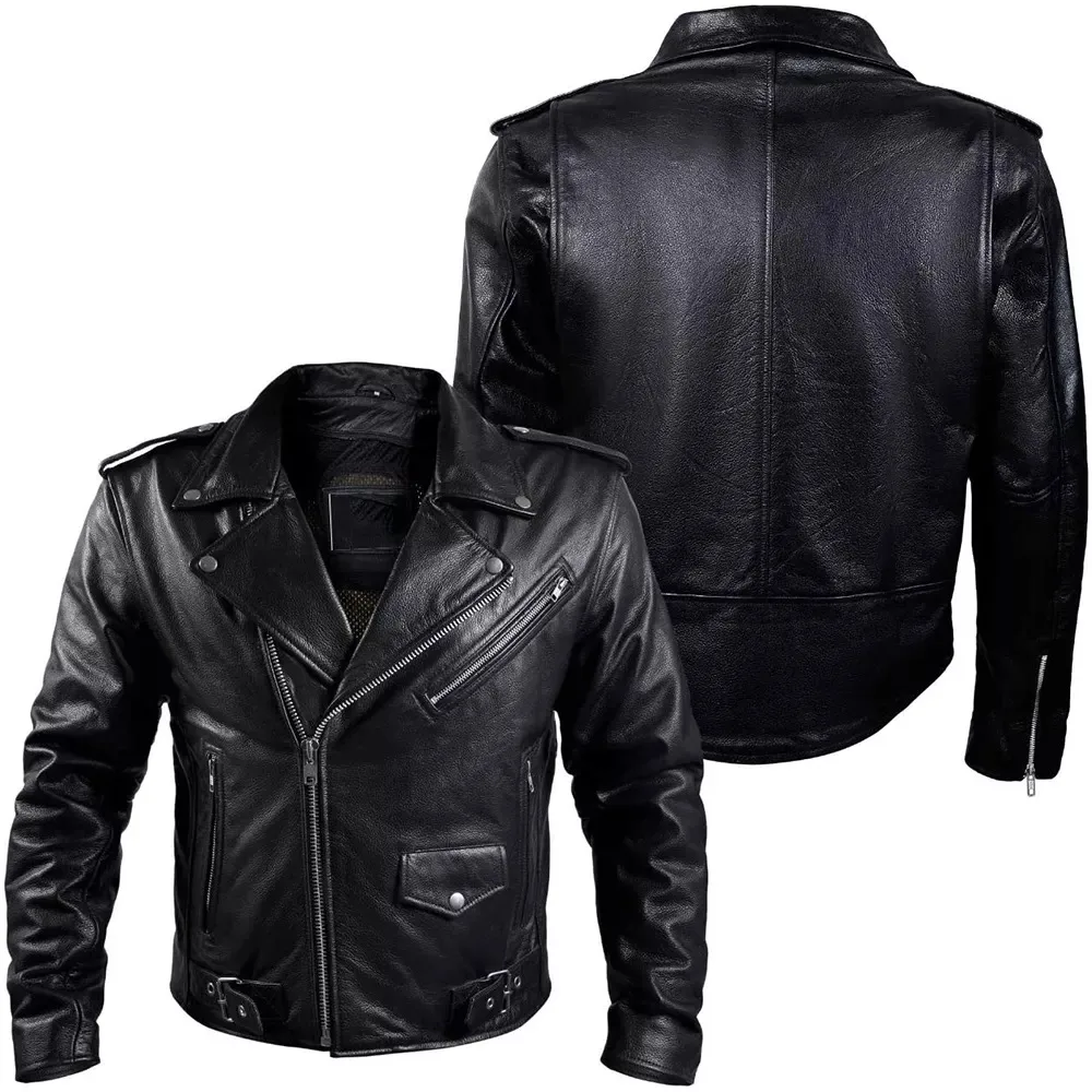 Direct High Quality Plus Size Zipper Leather Jacket for Men Leather Coats