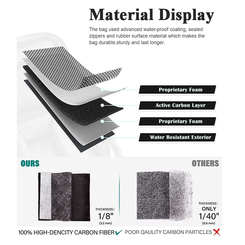 Material: Polyester + Activated Carbon lining + Mesh