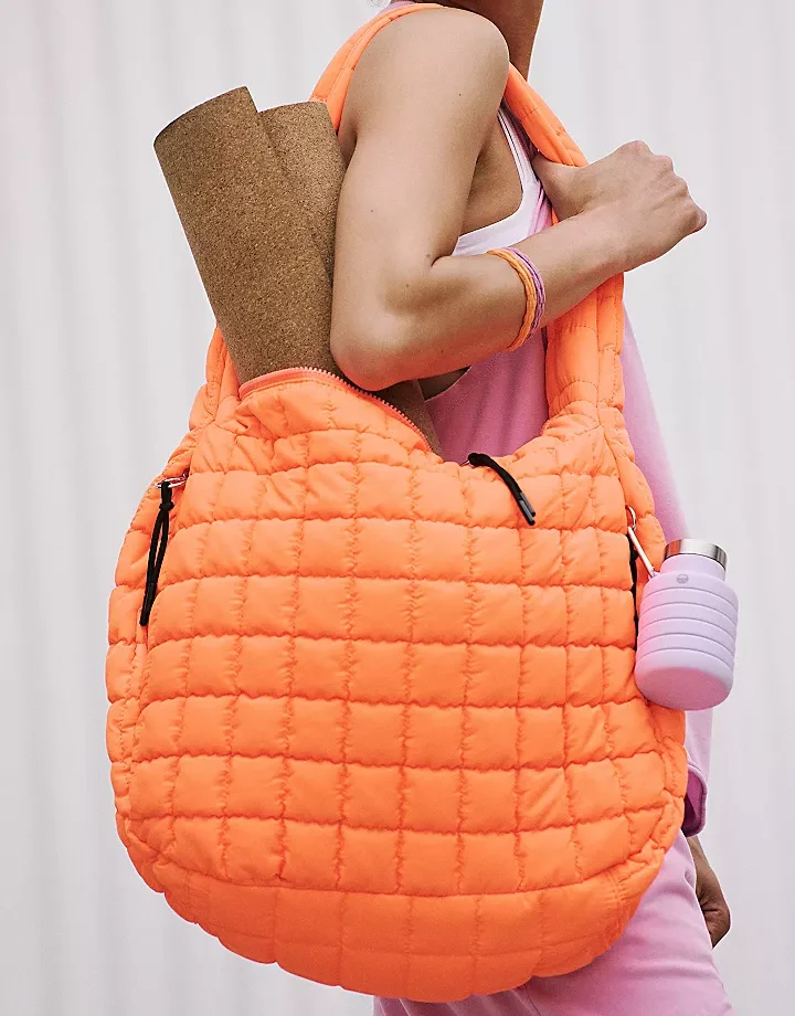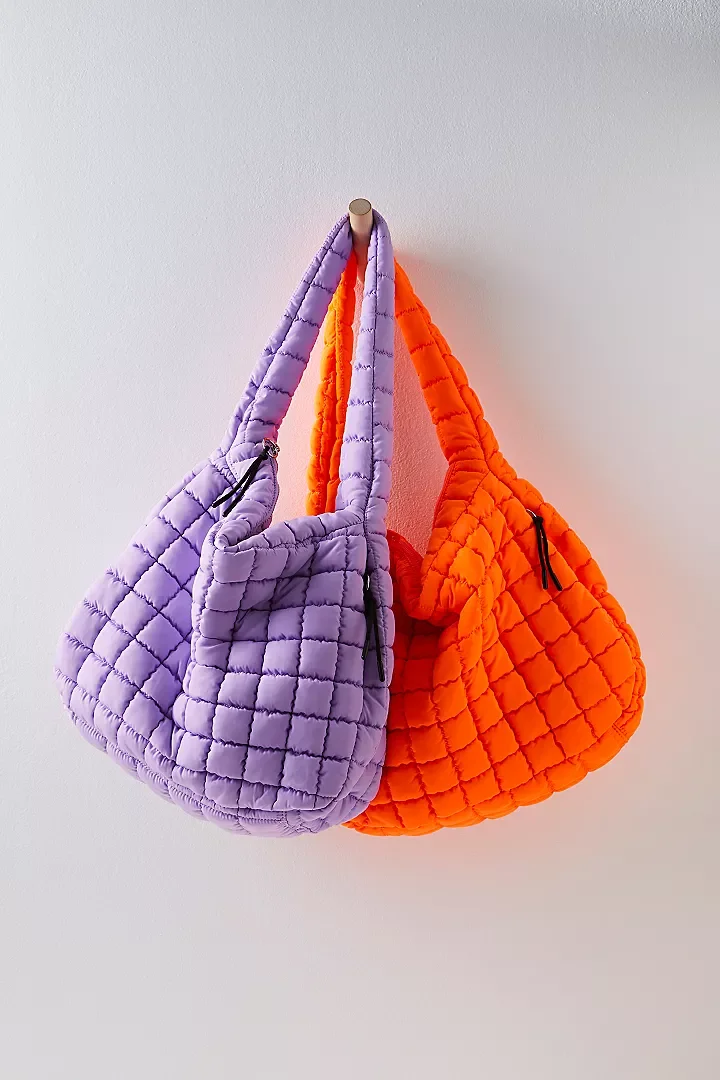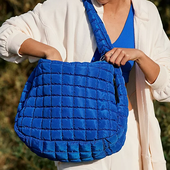 Logo Women’s Winter Fashion Crossbody Tote Bag Padded Puffy Quilted Puffer with Zipper Closure Soft Shoulder Tote Bag