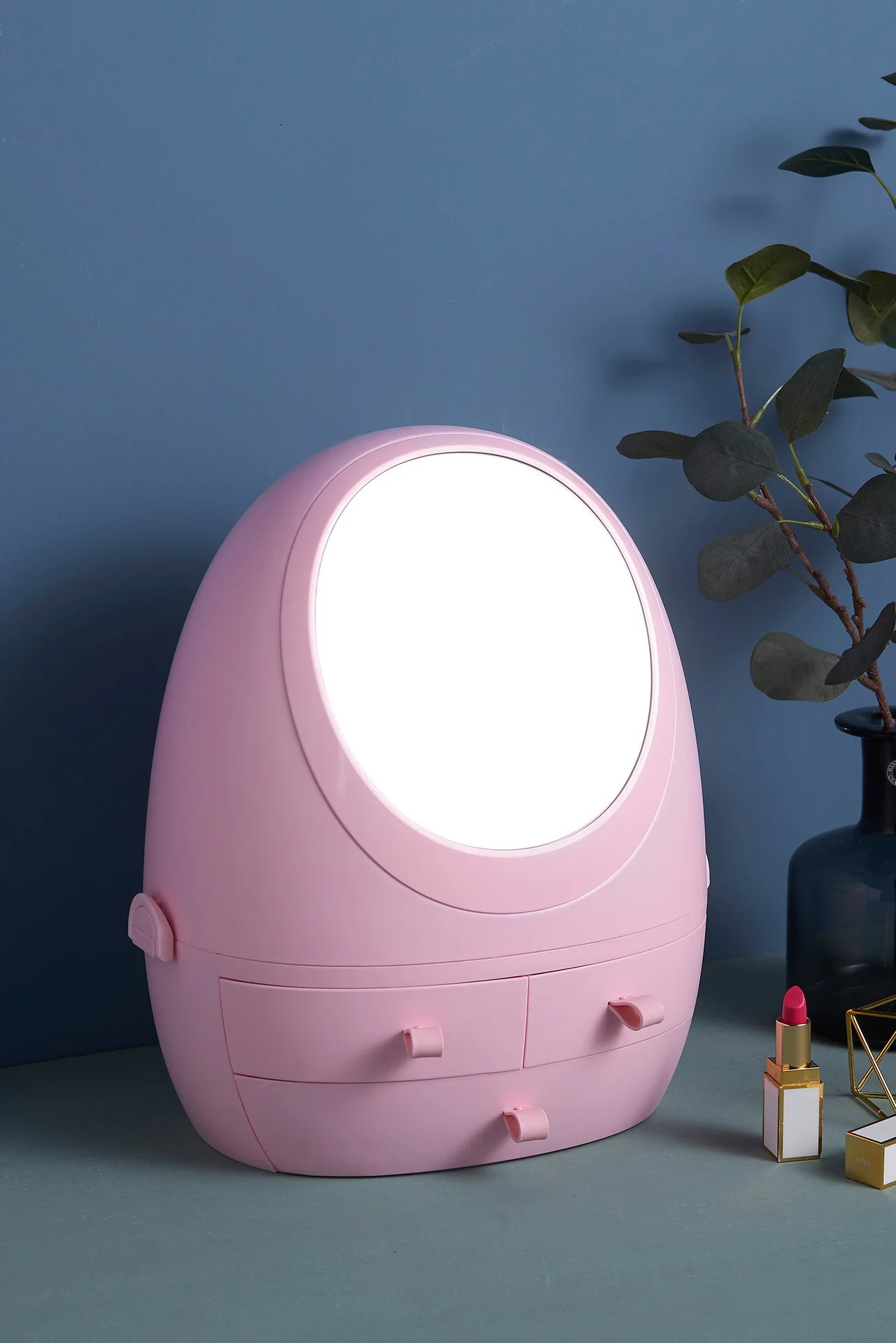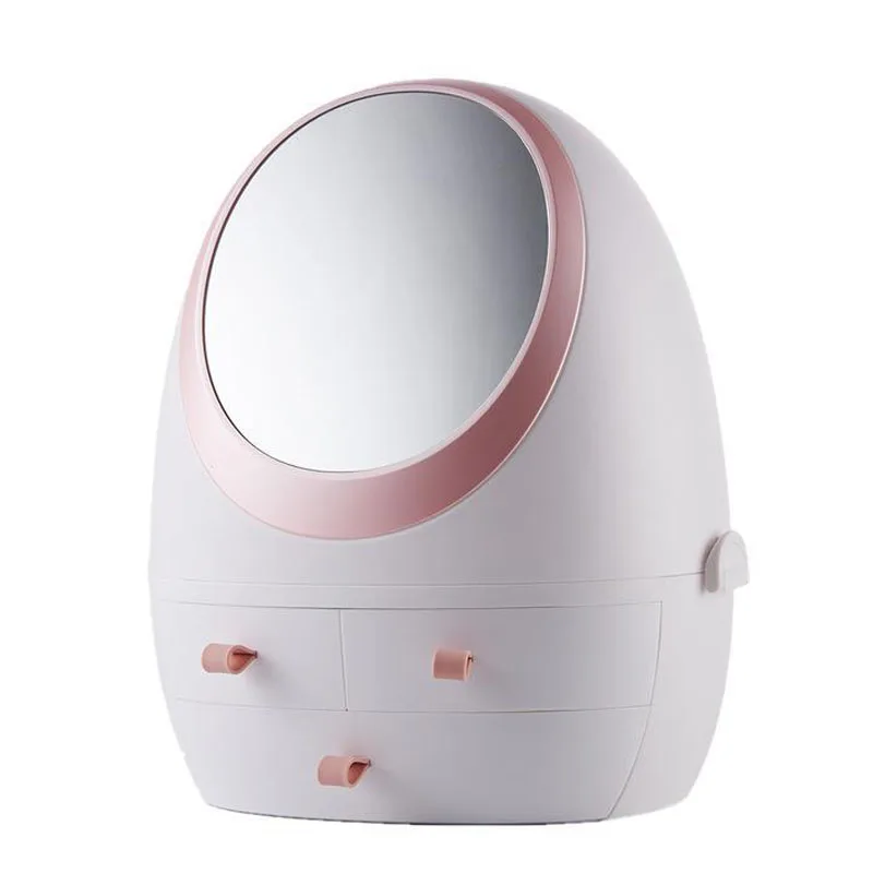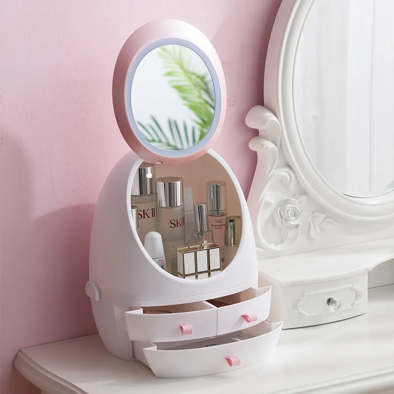 Dustproof Drawer Make Up Storage Box Bathroom makeup organizer with mirror led light