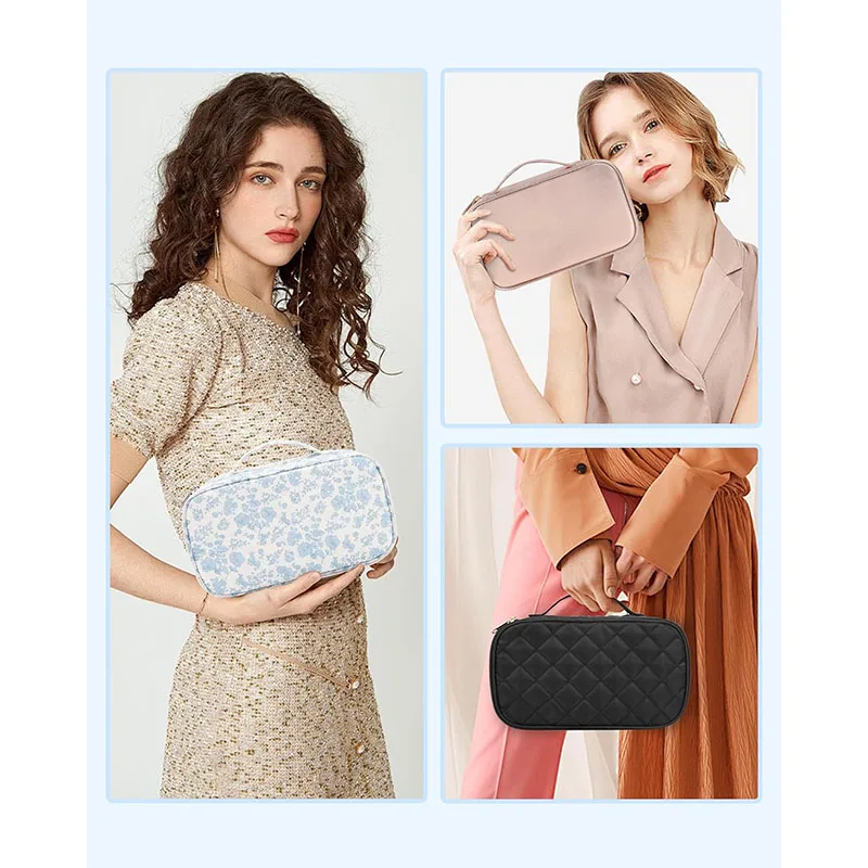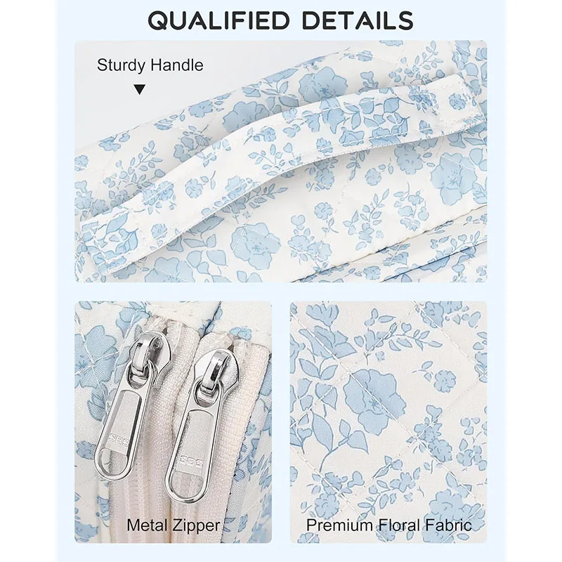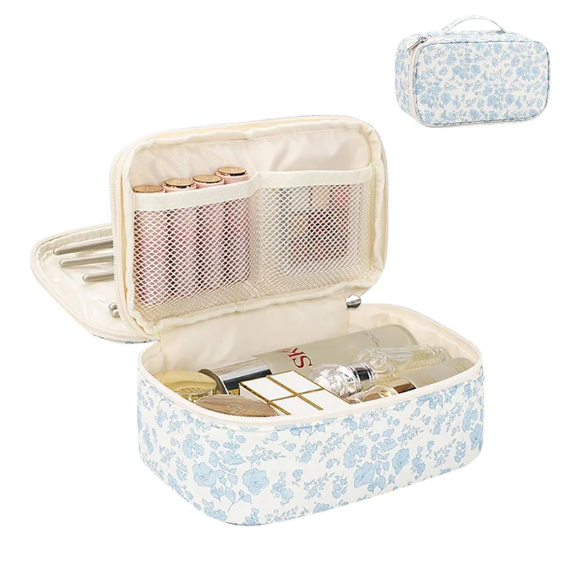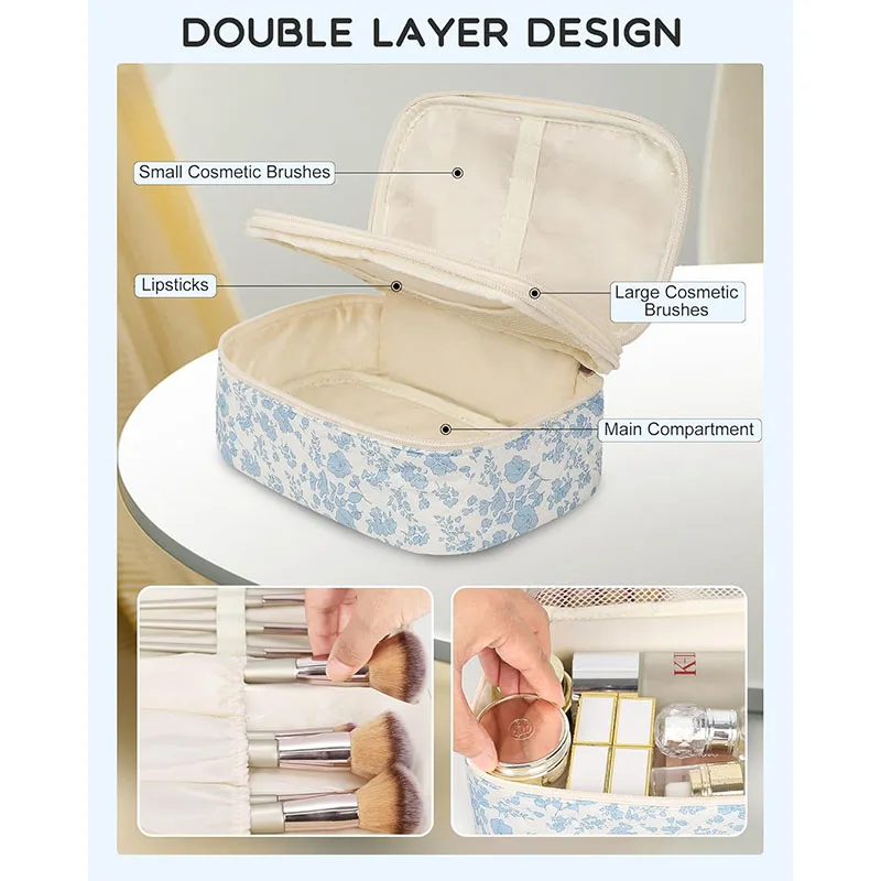Floral Travel Makeup Bag with Brush Compartment Portable Double Layer Design for Women-Cute for Organizer