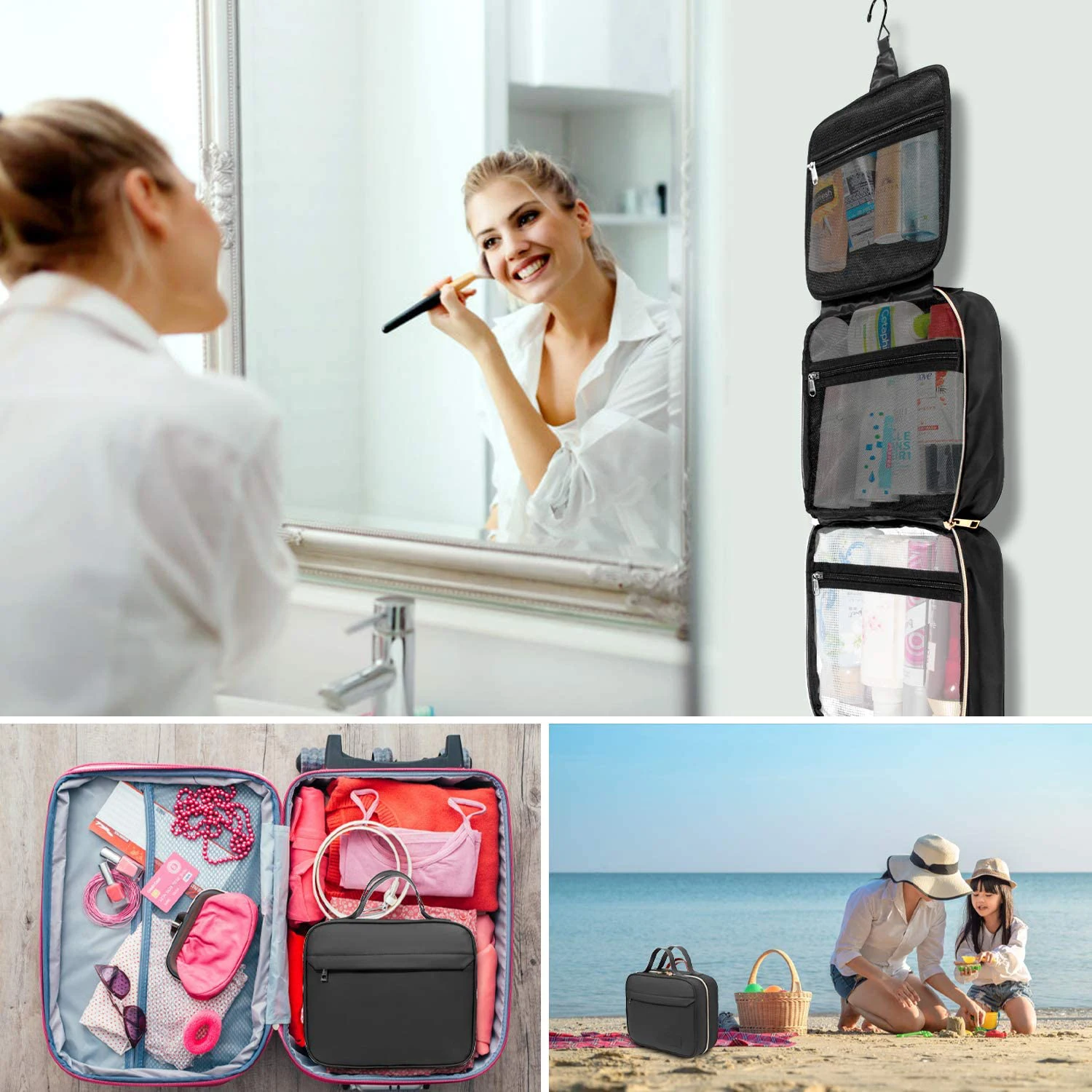 Large Capacity Cosmetic Makeup Case Black Travel Accessories Kit Organizer Hanging Waterproof Toiletry Bag