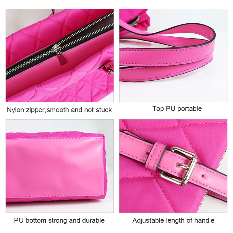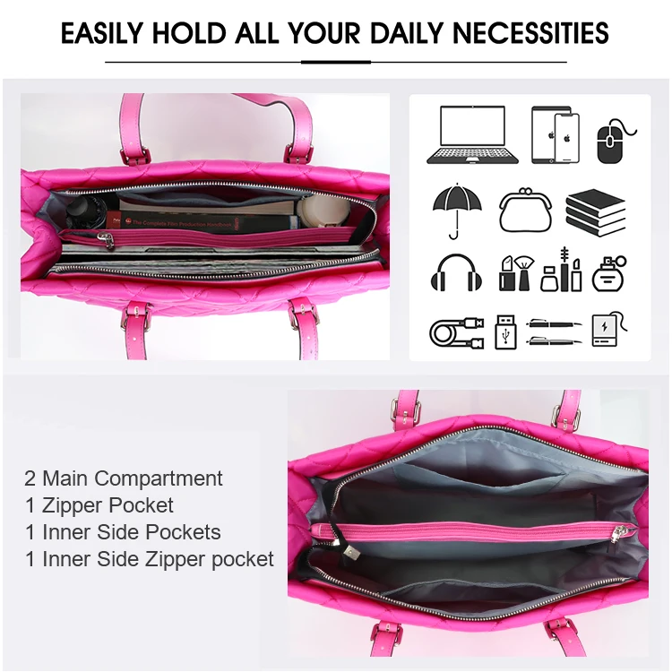 Large Capacity Padded Waterproof Puffer Puffy Shoulder Quilted Tote Bag With Leather Handle
