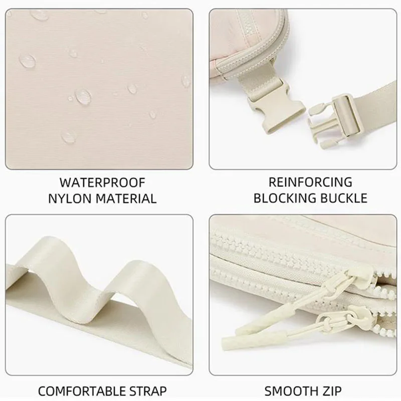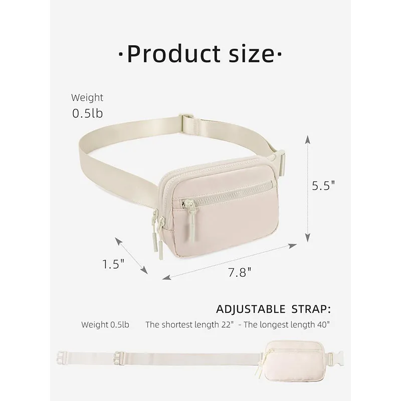 Unisex Fanny Packs Belt Bags 4-Zipper Pockets Nylon Waterproof Fashion Lightweight Crossbody Bags Adjustable Strap