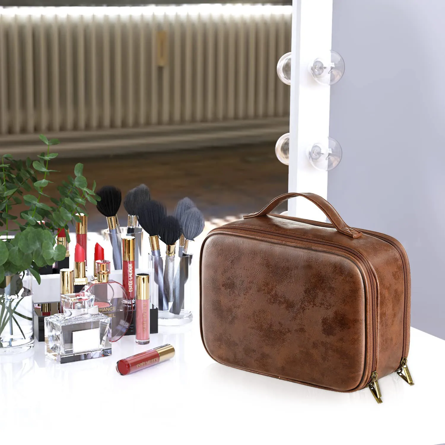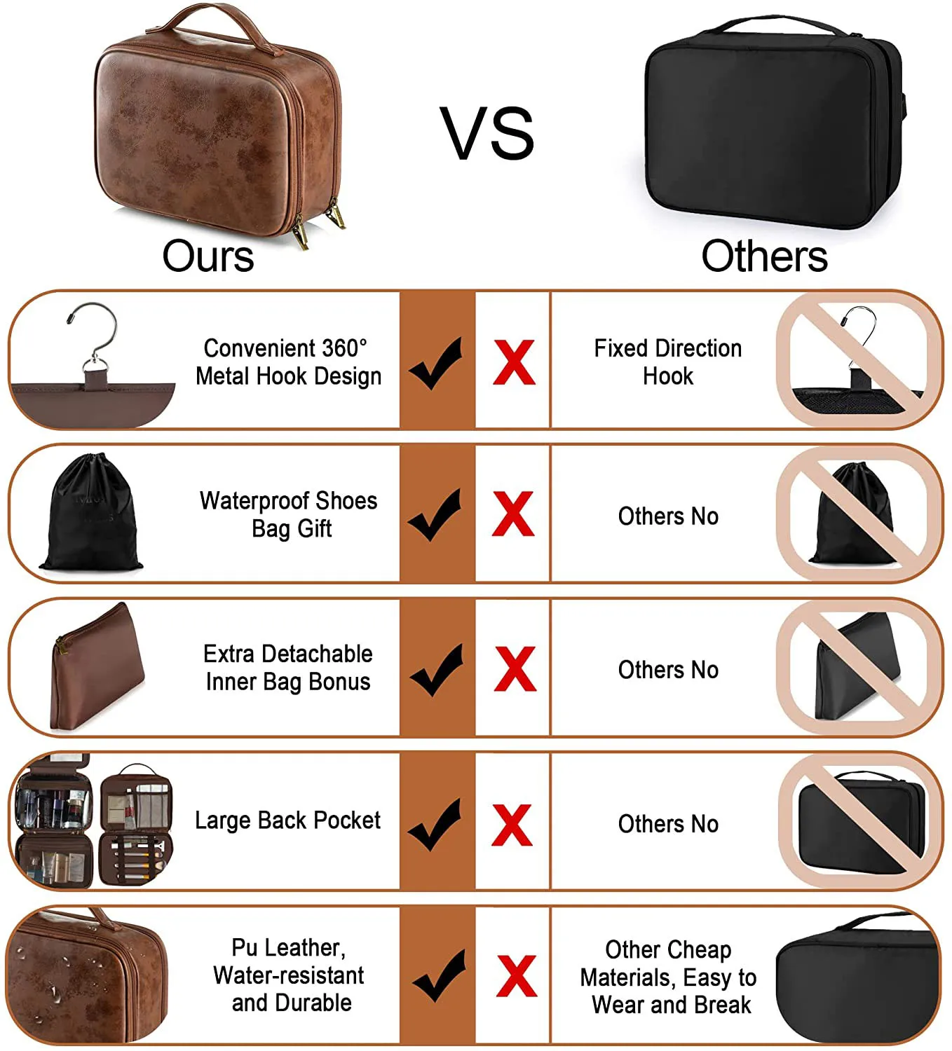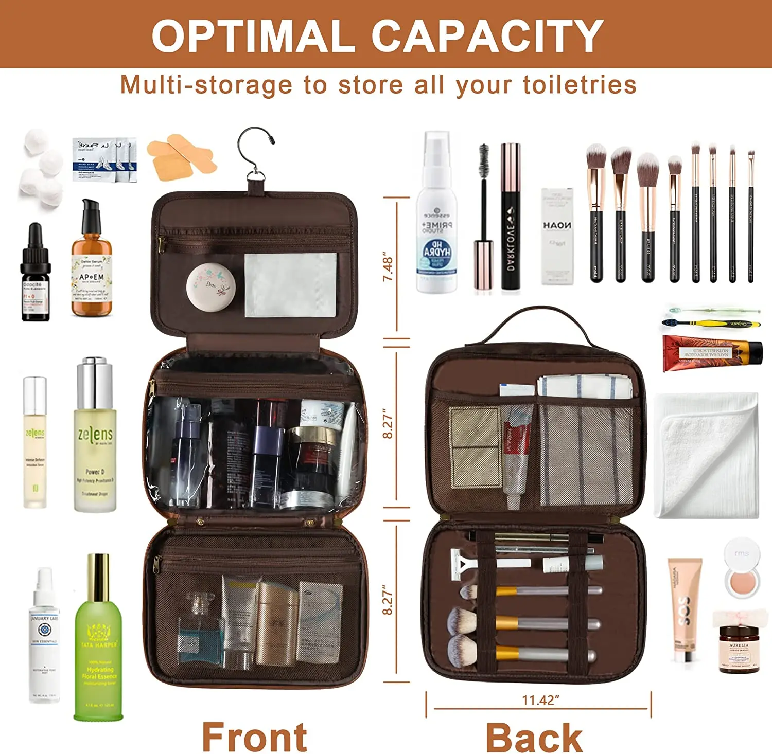 Water-resistant Makeup Organizer Cosmetic Large Hanging Travel Leather Toiletry Bag for Men