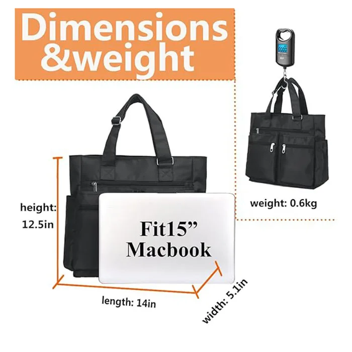 Waterproof Nylon Tote Bag Multi-Pocket Shoulder Design Personalized Laptop Work Handbag Teacher Purse for Women Men for Daily