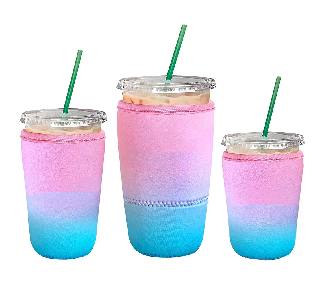 3 Pack Reusable Iced Cover Neoprene Coffee Cup Cold Drink Sleeves