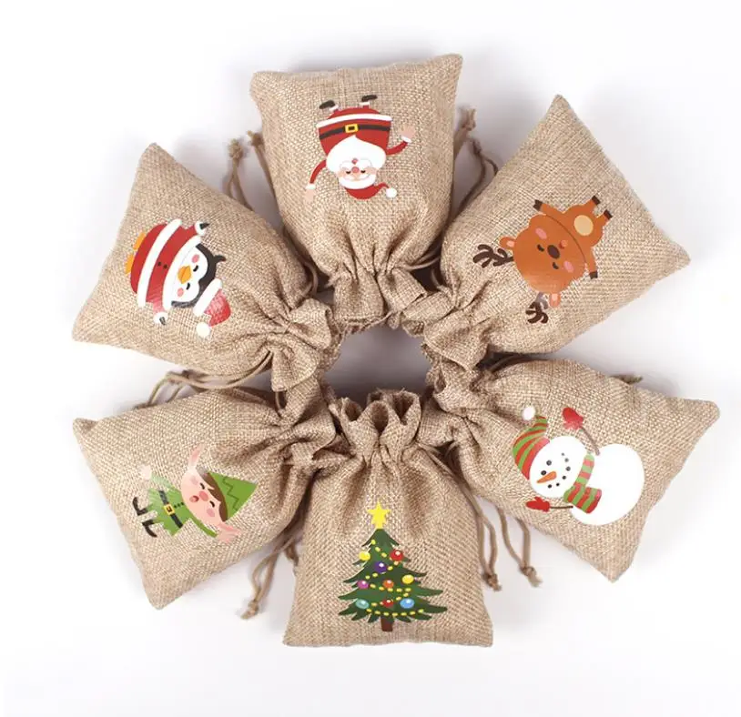 Christmas Decorations Kid Jute Small tote Children Gift Candy Storage Burlap Christmas Drawstring Bag