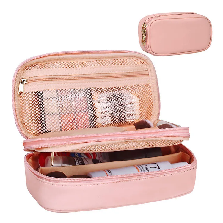 Travel Girls Portable 2 Layer Cosmetic Case Makeup Brush Organizer Bag