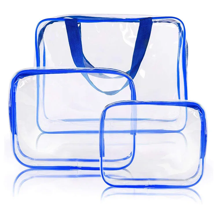 Transparent PVC Travel Zipper Toiletry Makeup Organizer Cosmetic Clear Bag With Handle