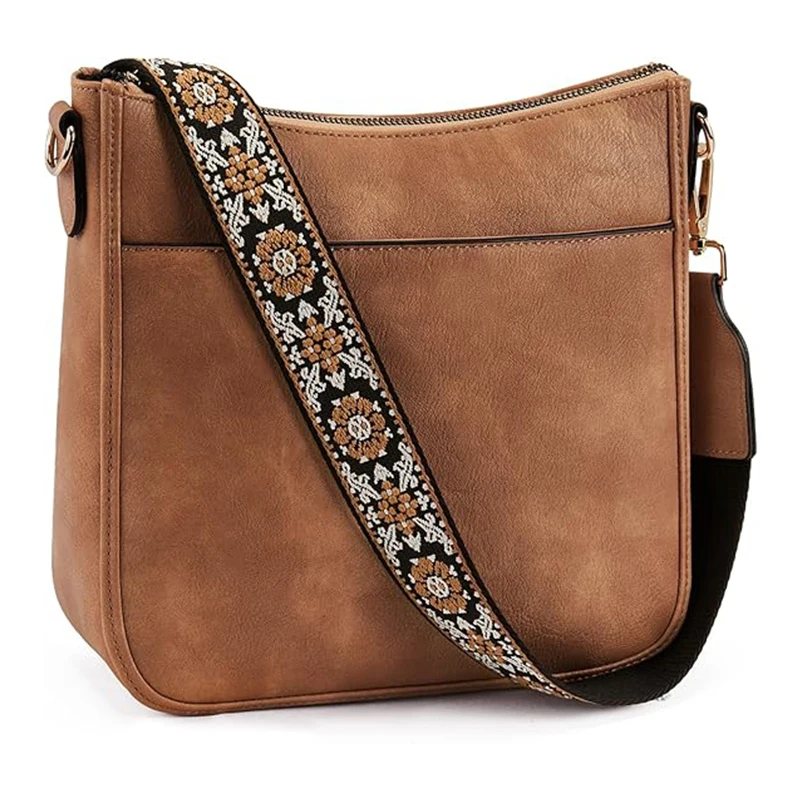 Travel Crossbody Hobo Handbag Genuine Leather Shoulder Bag Wide Strap Geometric Alligator Pattern Lined Chains Pearl Bow