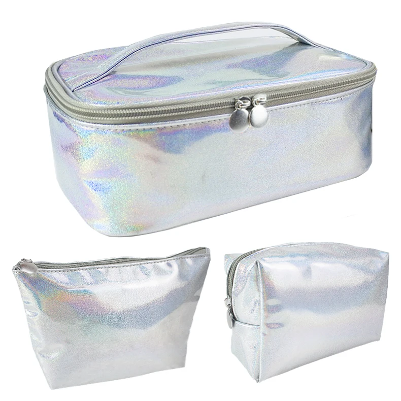 Travel Holographic Toiletry Makeup Waterproof Pu Leather Cosmetic Bag Set